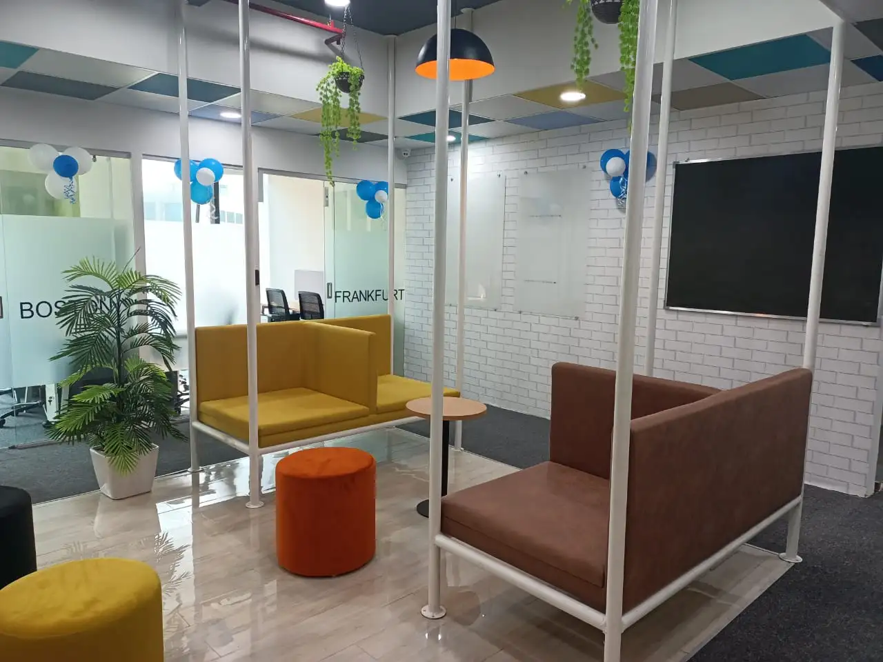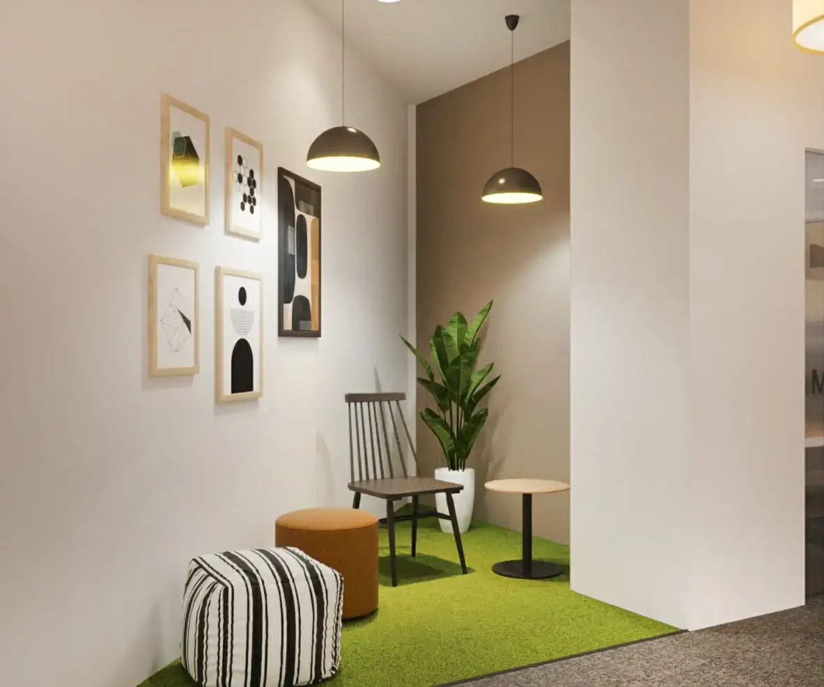 Comfortable spaces designed for relaxation, informal meetings, or quick brainstorming sessions.